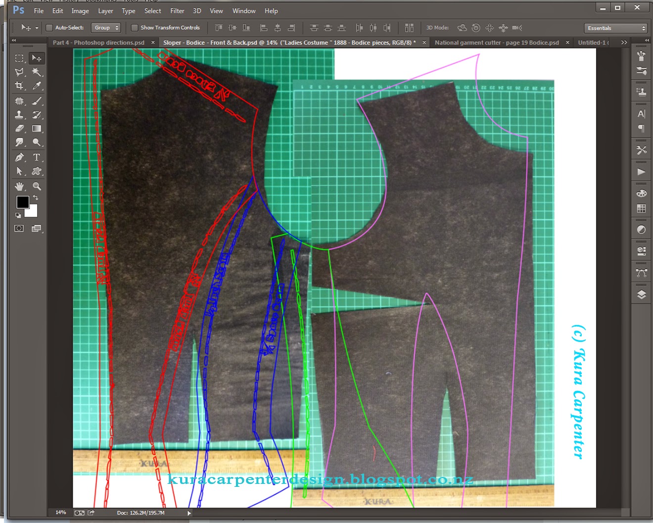 Today using Photoshop I'll show you how to combine your personal Sloper, as prepped in Part 2, with a digitized Historical sewing pattern of choice, from Part 3, into a newly drafted pattern that's custom fitted to you.